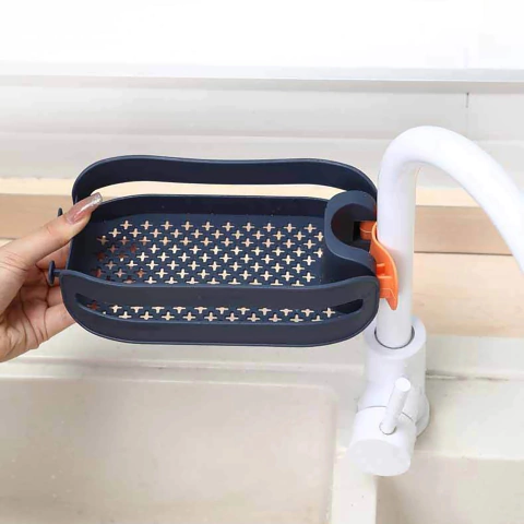 Economize espaço e torne sua área na cozinha mais prática e organizada com este suporte multiuso que pode ser fixado na torneira da pia.